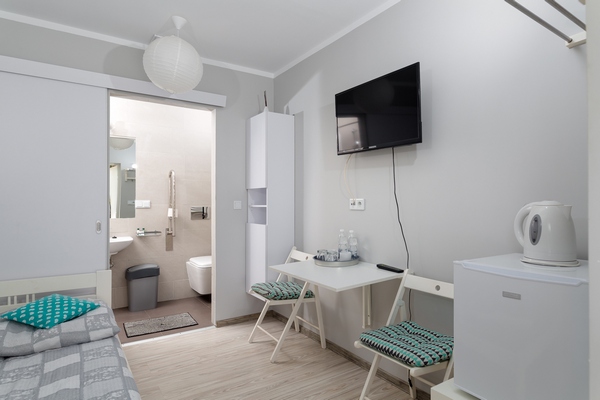 Tyto pokoje mají bezbariérovou koupelnu, do které se vstupuje posuvnými dveřmi bez prahu. Podrobnosti naleznete zde.