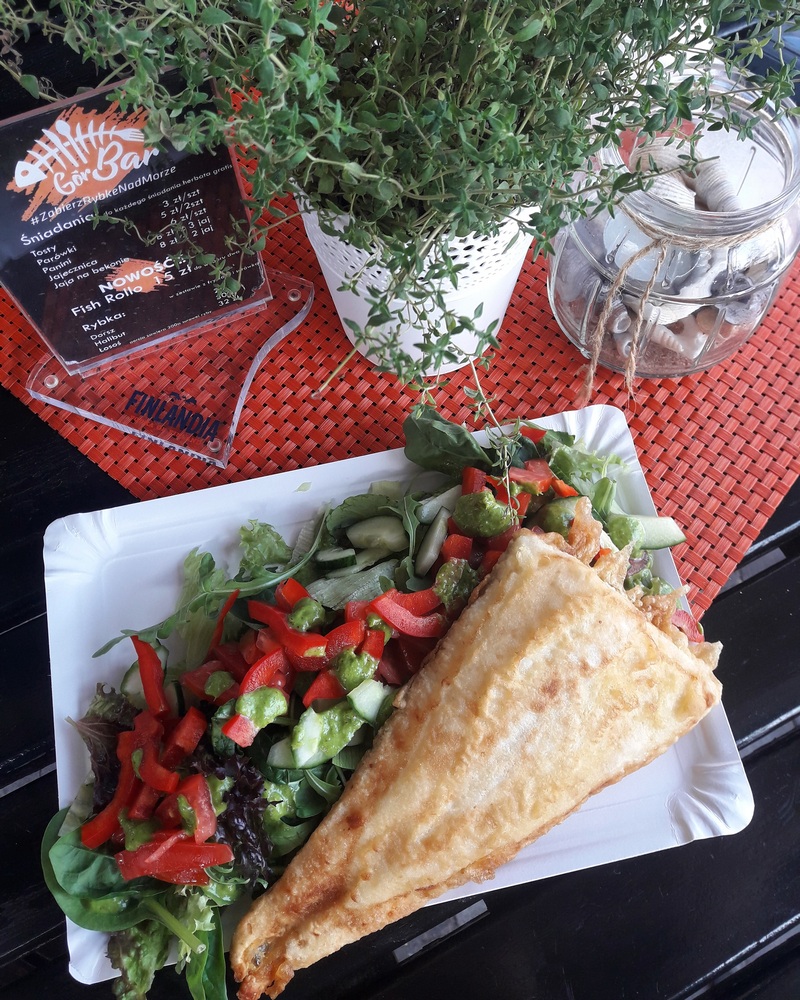 Restaurace GórBar kromě nejlepších smažených ryb nabízí také energické snídaně do 11:00 a nový pokrm na polském pobřeží – RolloFisz, tedy rolovanou rybu se salátem a hranolky s sebou.